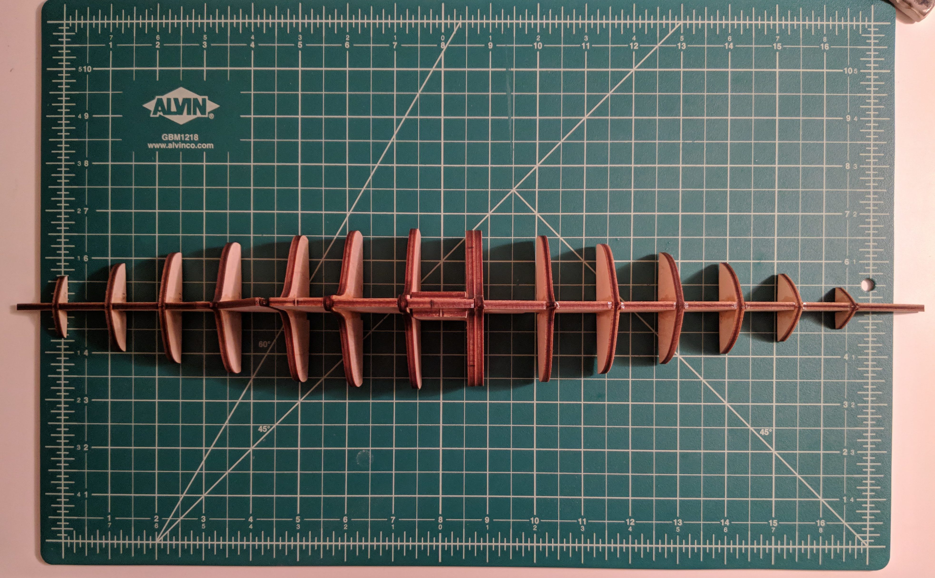 This post will cover the process of gluing the "bulkheads" to the keel and then adding a false deck. The word "bulkhead" is not entirely accurate, to be fair, since a yacht like this didn't have full fledged bulkheads. They are essentially functioning like a frame onto which the hull planking will be glued. The bulkheads and keel are the skeleton on which the rest of the boat builds. That means that everything here needs to be accurate, or the flaws will become magnified throughout the remainder of the build.