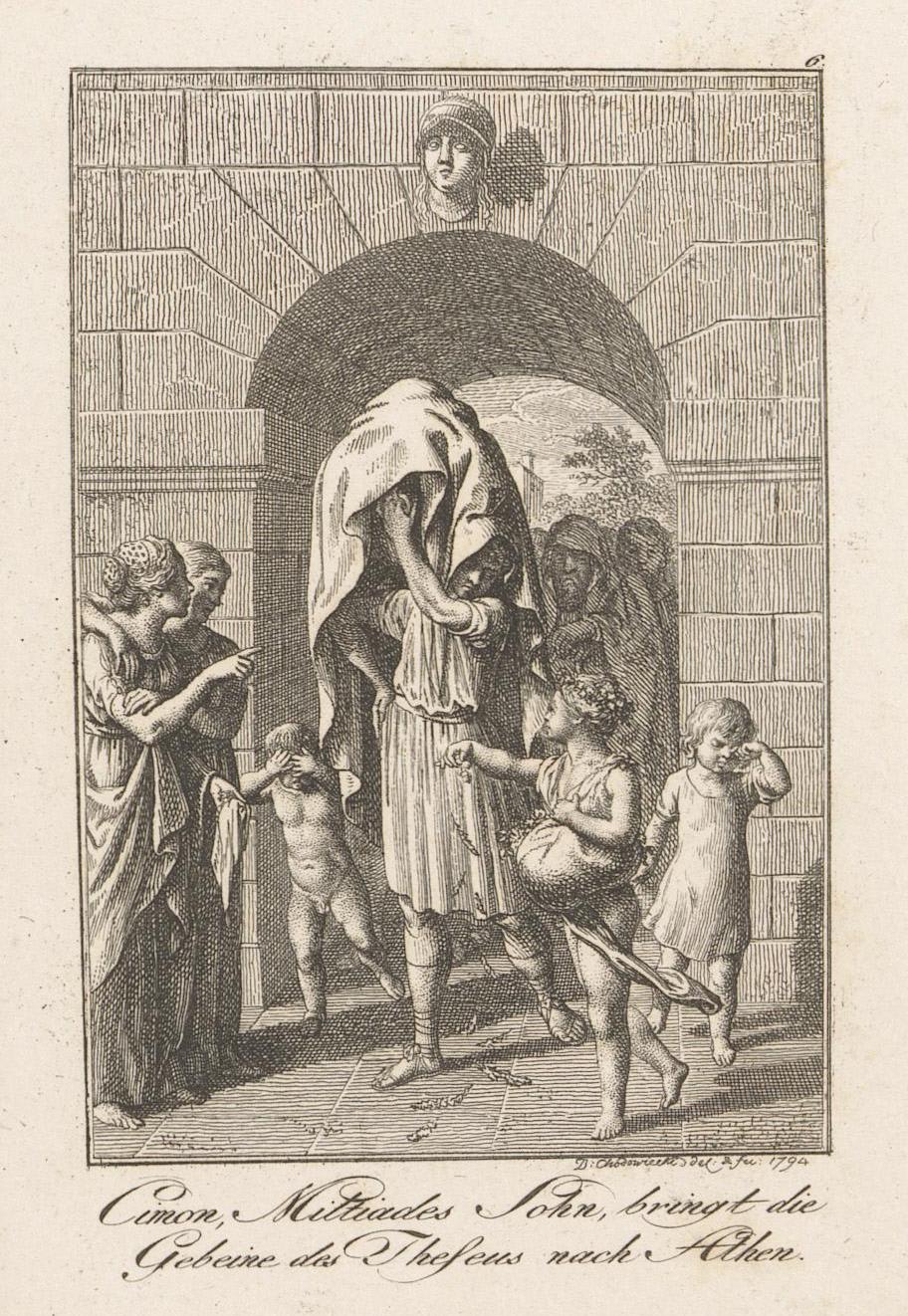 And after the Median wars, in the archonship of Phaedo, when the Athenians were consulting the oracle at Delphi, they were told by the Pythian priestess to take up the bones of Theseus, give them honourable burial at Athens, and guard them there. But it was difficult to find the grave and take up the bones, because of the inhospitable and savage nature of the Dolopians, who then inhabited the island. However, Cimon took the island, as I have related in his Life, and being ambitious to discover the grave of Theseus, saw an eagle in a place where there was the semblance of a mound, pecking, as he says, and tearing up the ground with his talons. By some divine ordering he comprehended the meaning of this and dug there, and there was found a coffin of a man of extraordinary size, a bronze spear lying by its side, and a sword. When these relics were brought home on his trireme by Cimon, the Athenians were delighted, and received them with splendid processions and sacrifices, as though Theseus himself were returning to his city. And now he lies buried in the heart of the city, near the present gymnasium, and his tomb is a sanctuary and place of refuge for runaway slaves and all men of low estate who are afraid of men in power, since Theseus was a champion and helper of such during his life, and graciously received the supplications of the poor and needy. The chief sacrifice which the Athenians make in his honour comes on the eighth day of the month Pyanepsion, the day on which he came back from Crete with the youths. But they honour him also on the eighth day of the other months, either because he came to Athens in the first place, from Troezen, on the eighth day of the month Hecatombaeon, as Diodorus the Topographer states, or because they consider this number more appropriate for him than any other since he was said to be a son of Poseidon.